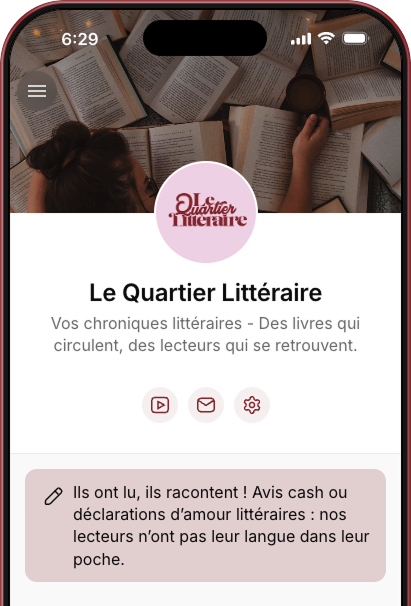 Avis cash ou déclarations d’amour littéraires : nos lecteurs n’ont pas leur langue dans leur poche. Rejoingnez la communauté et partage tes propres chroniques depuis l’app 📚